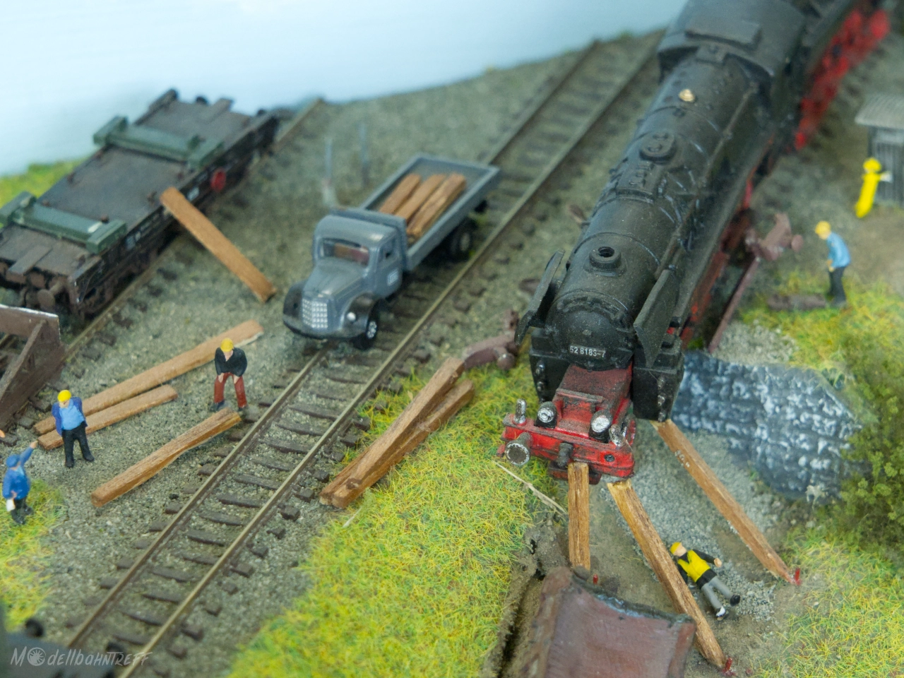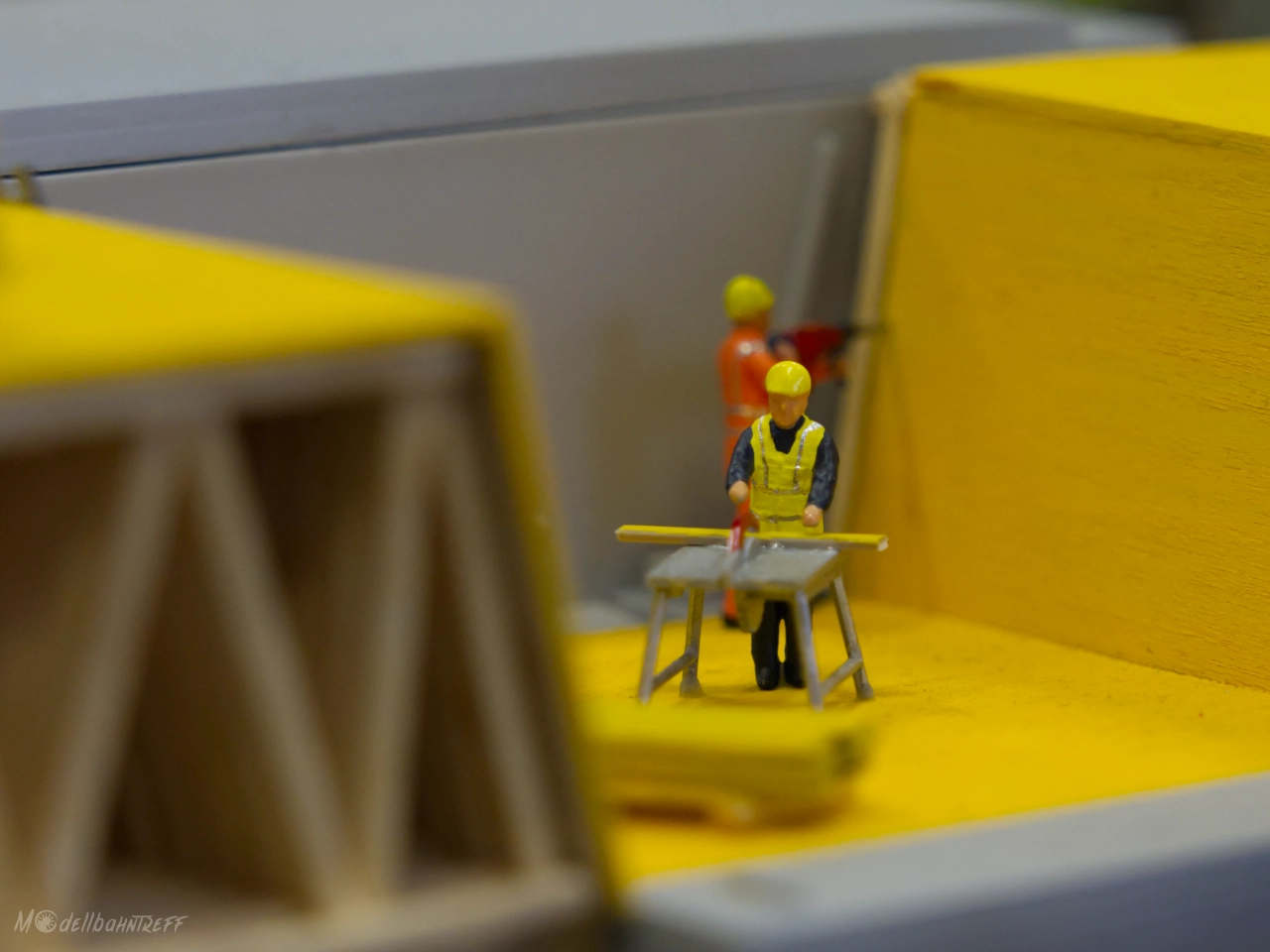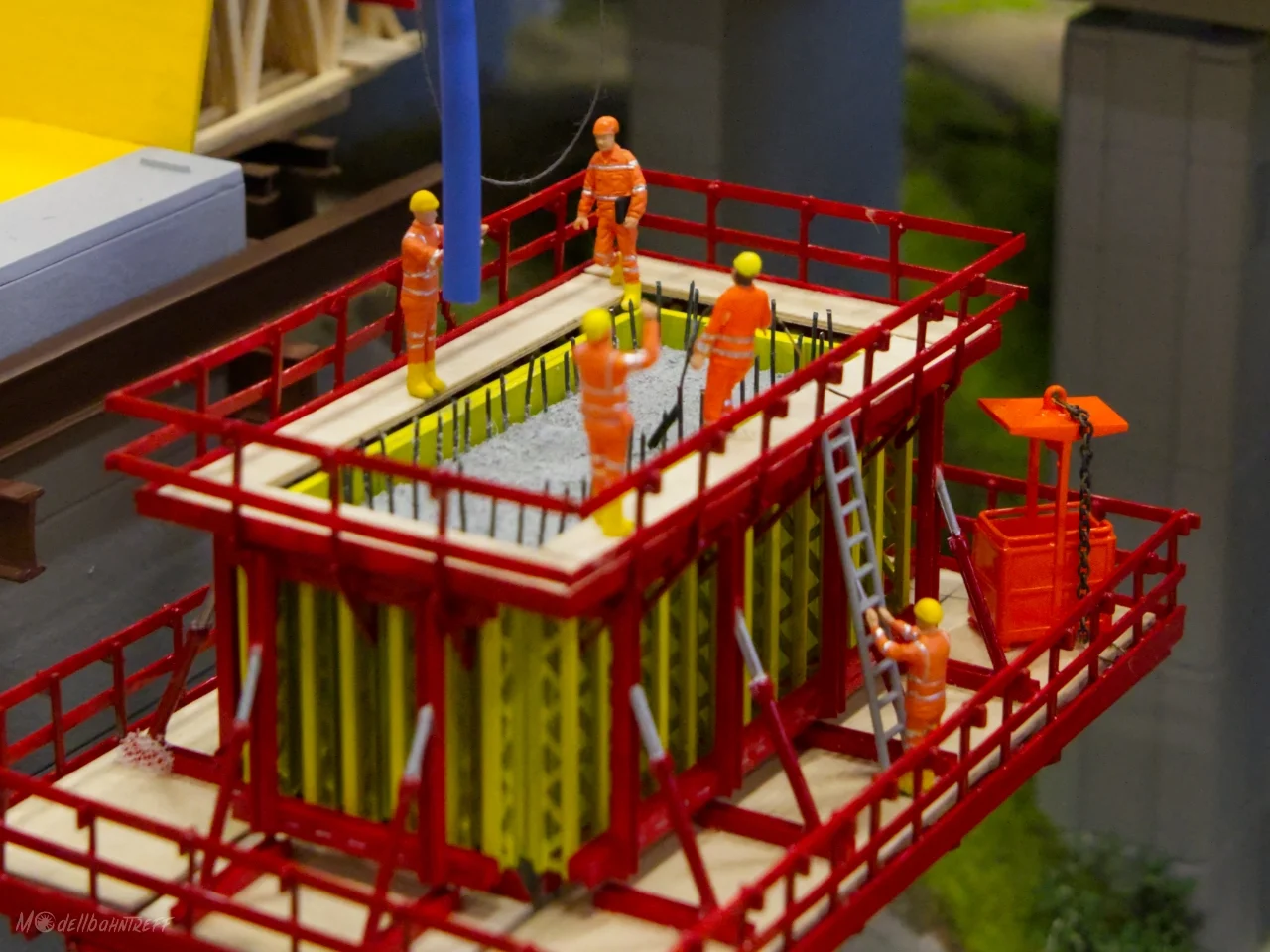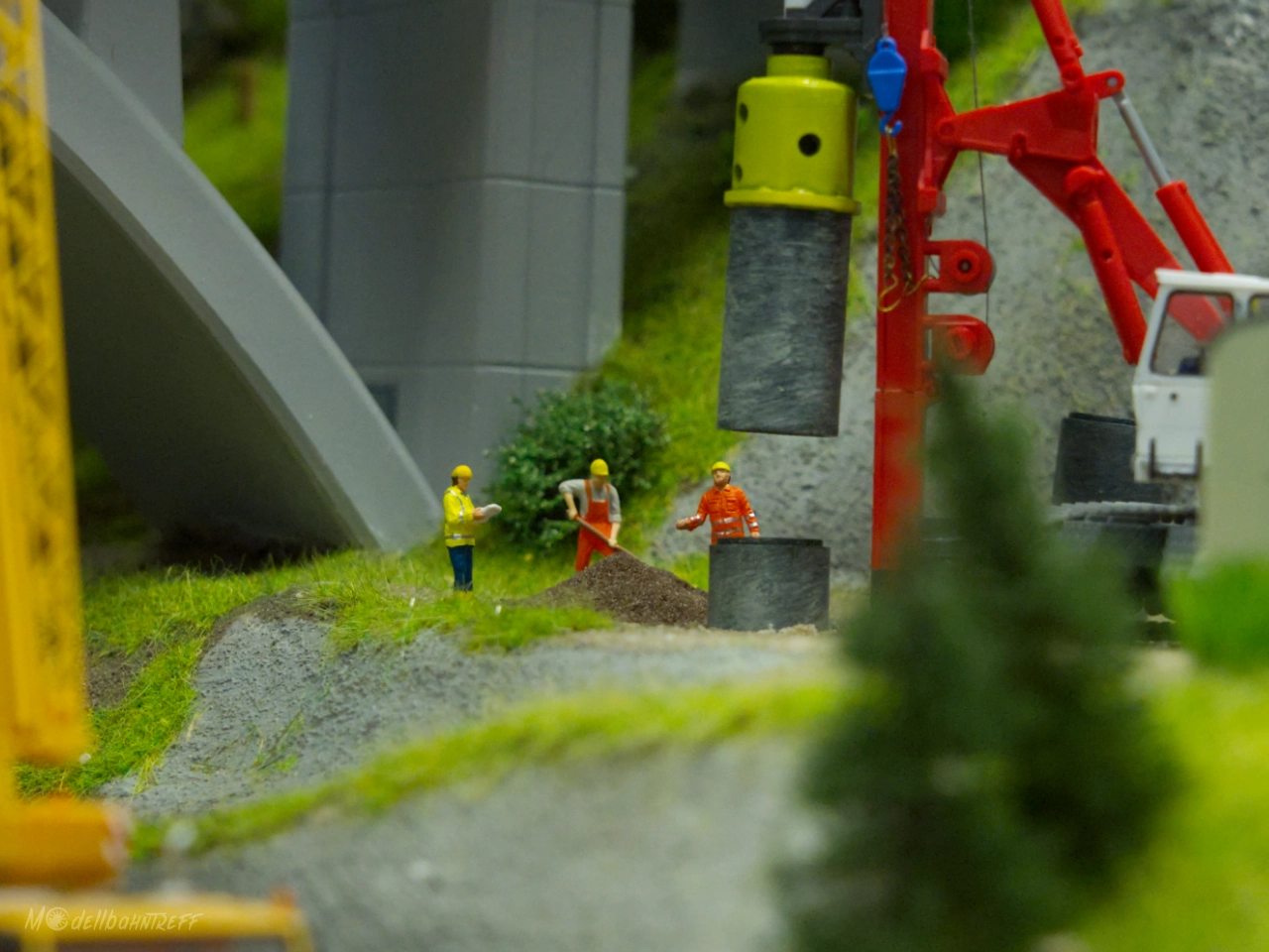Eigentlich ist die brandneue Brückenbaustelle Teil der Modulanlage der Märklinfreunde Hilpertsau-Obertsrot, doch alleine an diesem Segment könnte man stundenlang die vielen Szenen bestaunen.